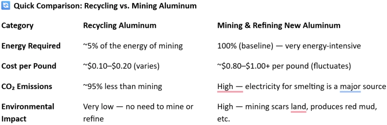 ✅ Aluminum – Recycling aluminum saves 95% of the energy it takes to